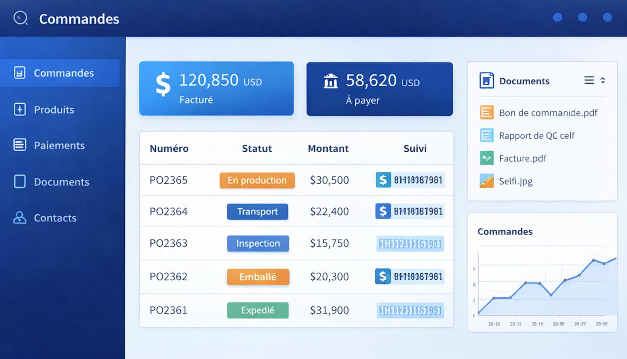 通过我们的内部系统实时跟踪您的订单、文件和财务流向。